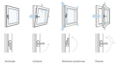 W zimnych porach roku wietrzenie pomieszczeń powoduje znaczne straty energii. Gdy skrzydło jest odsunięte od ramy, zużyte nagrzane powietrze uchodzi górą, a zimne powietrze napływa dołem i powoli, równomiernie rozchodzi się po całym pomieszczeniu, które nie wychładza się i straty energii są znacznie mniejsze.